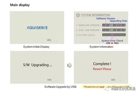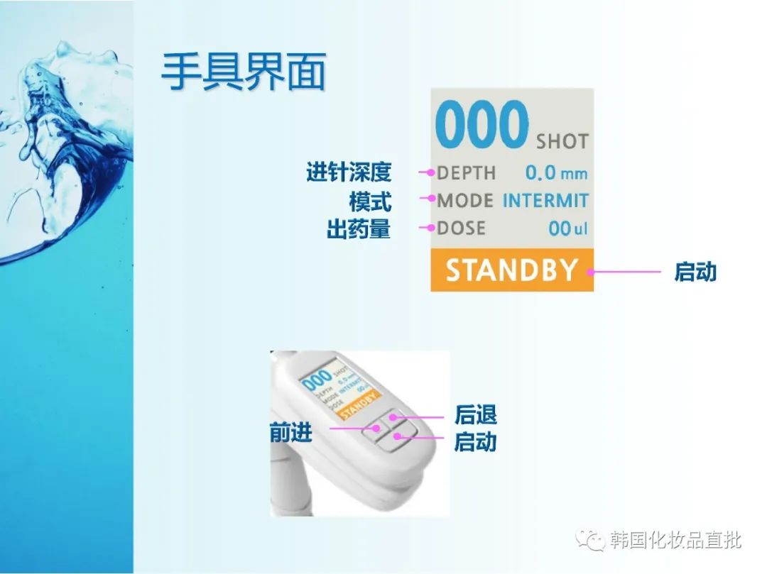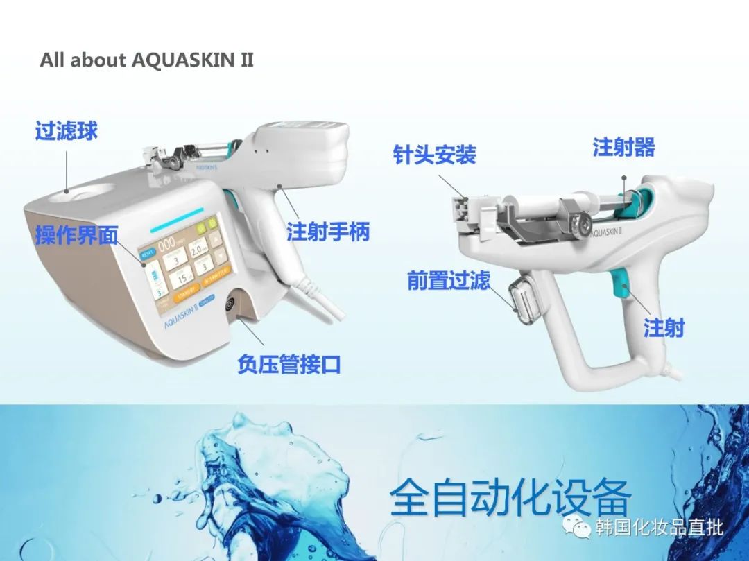 AQUA SKIN II AUOASKIN II 通过注射透明质酸或其他溶液在真皮中与 5 针多针增强活性胶原蛋白和弹性蛋白制度。名义上,皮肤失去 TIS 自己的水分和弹性衰老,然后使皱纹。A0UASKIN2 直接将各种溶液灌入真皮,解决水分的损失,改善皮肤问题和老化的根本原因,然后改善弹性、增亮、保湿和皱纹的改善。特点 -吸入和注射同时 -精确控制深度 5 注射量 -无渗漏溶液 -用于各种溶液 应用 -弹性 -亮化 -保湿 -皱纹改善