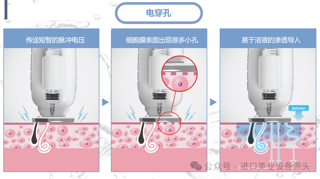 1.高效的溶液渗透性能,且不伤皮肤表面2.激光、微针治疗后的后期护理3.减少怠工期,降低炎症后色素沉着的风险4.根据所需可进行冷热治疗(冷疗0~-20°C/热疗0~45°C)5.手柄上装有注射连接器- 可准确控制溶液剂量,减少漏液浪费,更加方便使用6.可调节脉冲极性(+或-),适用于各种类型的溶液导入,普通溶液用脉冲+,维C类产品用脉冲-。