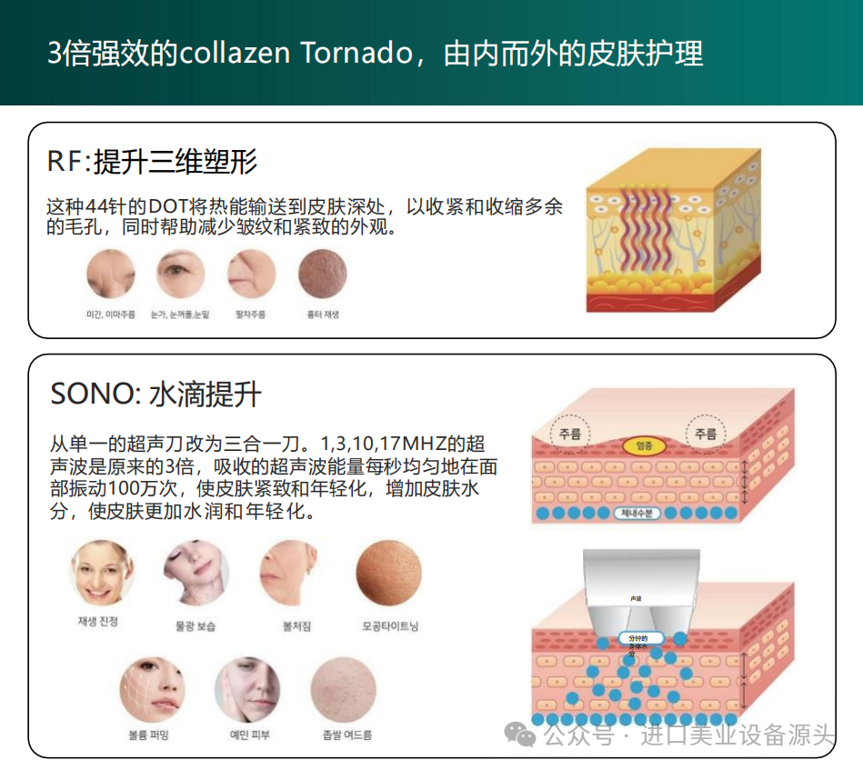 韩国新一代皮肤管理综合仪,打破传统,融合新技术,将水滴提升与问题性肌肤结合起来,一机多模式,满足不同客户皮肤问题需求。◾️sono clean清洁管理◾️sono 水滴提升◾️HIFU 紧致提升◾️RF射频再生◾️CRYO&C-ICON