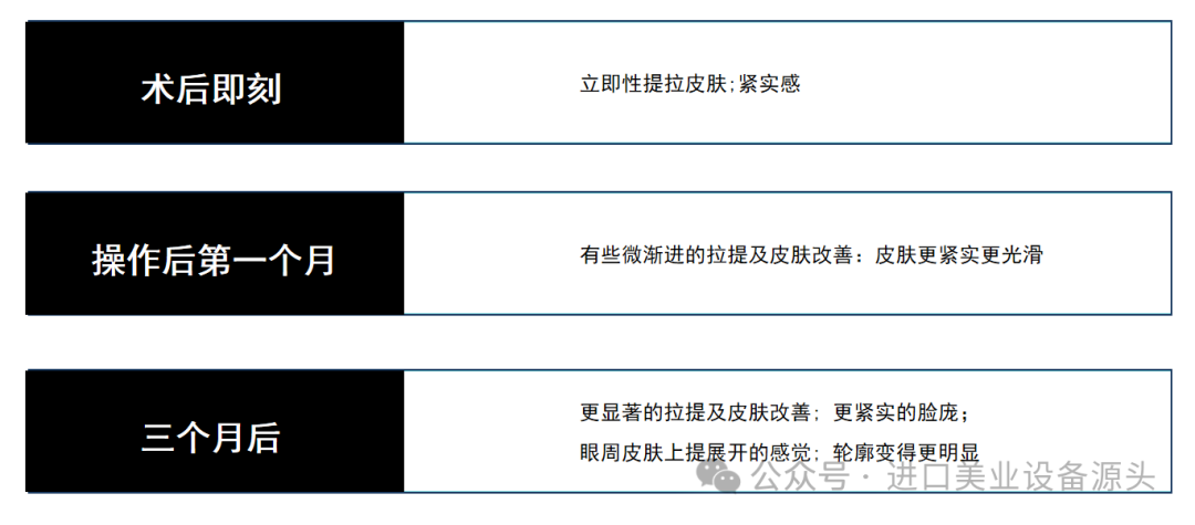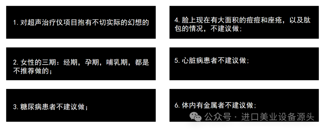 常见问题:A.操作疼痛度如何?取决于不同的客户痛感敏感度和脸部不同部位,操作过程中一般能感觉到温暖和轻微的疼痛, 离骨头较近的部位痛感稍强。B.操作需要多长时间?根据操作方案有所不同,一般操作40~90分钟。C.超声治疗仪有恢复期吗?做完会红肿、淤青吗?无恢复期,操作后即可恢复到正常生活中。术后偶有轻微泛红,很快即会消退,不影响日常生活。D:超声治疗仪操作后如何护理?避免过热的环境,如桑拿,温泉,阳光下暴晒。注意补水保湿。E:什么时候可以看到操作后的效果?术后即刻就能见到提升效果.3个月之后,效果达到峰值。F:操作多久见效?只要操作一次,就会有很好的效果。如果希望有更好的长期效果,建议按疗程操作。优势分析: