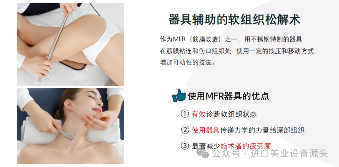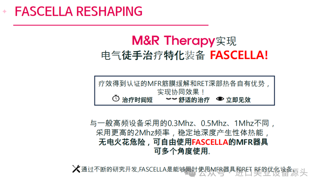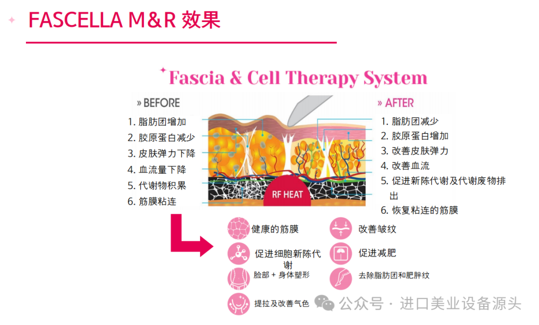 MFR器具、魔法手套)的 FASCELLA能量去除因筋膜粘连而积累的脂肪层,提高下垂肌肤弹性,同时促进代谢物排出和血液及营养素供给,有效分解脂肪、改善肤色。